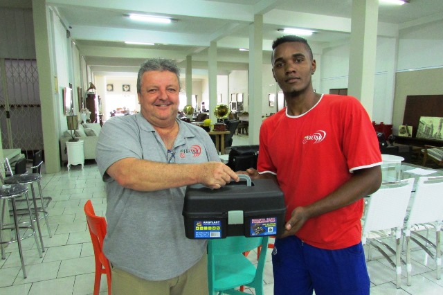 Sr. Maike Francisco cliente da Móveis Brasil foi o ganhador da caixa de ferramentas no 1º sorteio realizado hoje, 4 de agosto, na Associação Comercial e transmitido pelo Programa Cidade em Revista da Rádio Tropical.