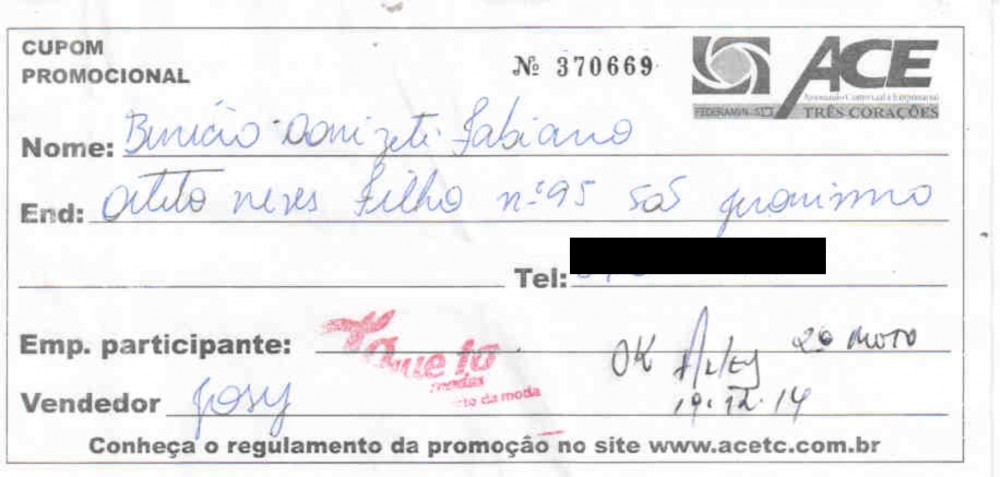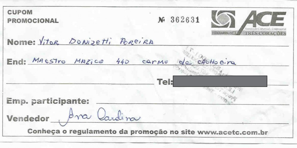 Ganhador – Vitor Donizete Pereira – Carmo da Cachoeira
