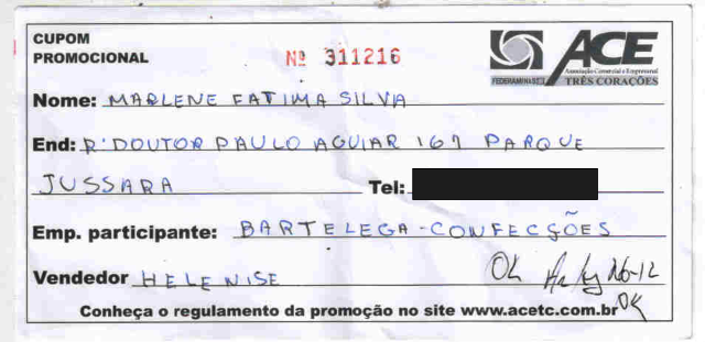 Ganhadora – Marlene Fátima Silva – Parque Jussara – Três Corações