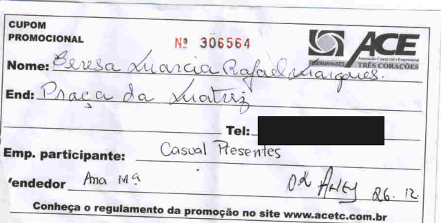 Foi realizado na manhã de hoje, 26 de dezembro na Pç Odilon Resende, o 3º e último sorteio da promoção de Natal da Associação Comercial de Três Corações e Rádio Tropical.