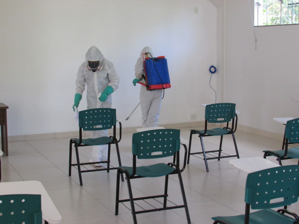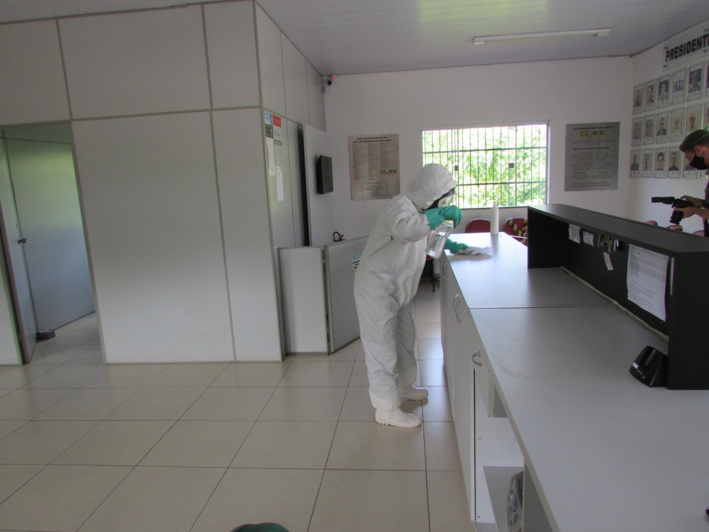 Escola de Sargentos das Armas (ESA) realizou nesta quinta-feira, dia 29 de abril, a desinfecção e higienização do prédio da Associação Comercial de Empresarial de Três Corações. Local de grande circulação de pessoas, diminuindo as possibilidades de transmissão do COVID-19. Este trabalho e apoio estão inseridos nas ações de combate à COVID-19 e medidas sanitárias de prevenção e controle da atual pandemia, realizados pela ESA, proporcionando à população e usuários um ambiente mais seguro.