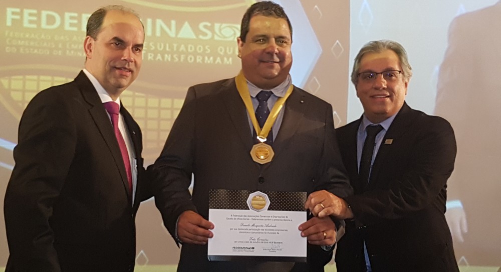 Com a presença de mais de mil pessoas, prestigiando, dentre eles homenageados, familiares e convidados, aconteceu no dia 26 de outubro, na cidade de Araxá, no Grande Hotel e Termas de Araxá a entrega do Mérito Empresarial da Federaminas. O evento é um dos mais tradicionais da Federaminas e que movimenta o mundo empresarial em Minas Gerais. O Mérito é entregue aos empresários que se destacaram no ano de 2019. A medalha e o diploma do Mérito Empresarial simbolizam o reconhecimento da Associação Comercial de Três Corações e Federaminas ao empresário Danilo Mesquita Andrade da empresa Terra Nova, que se destacou em nossa cidade nas atividades produtivas, no associativismo e em ações de interesse do bem comum, contribuindo, dessa maneira, para o desenvolvimento econômico e social.