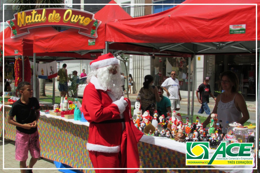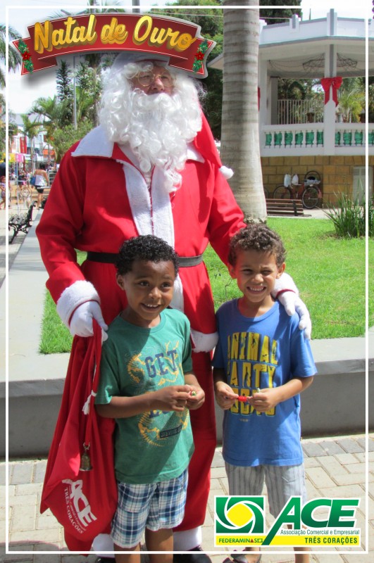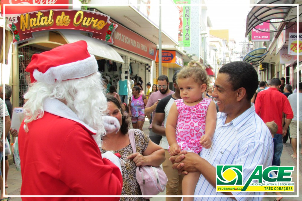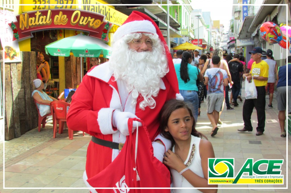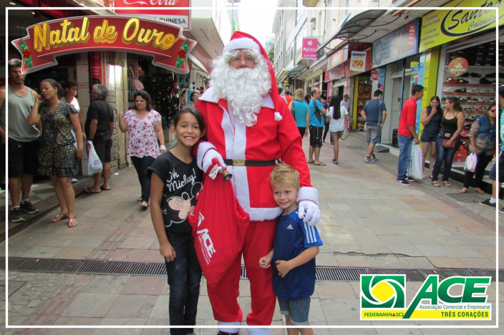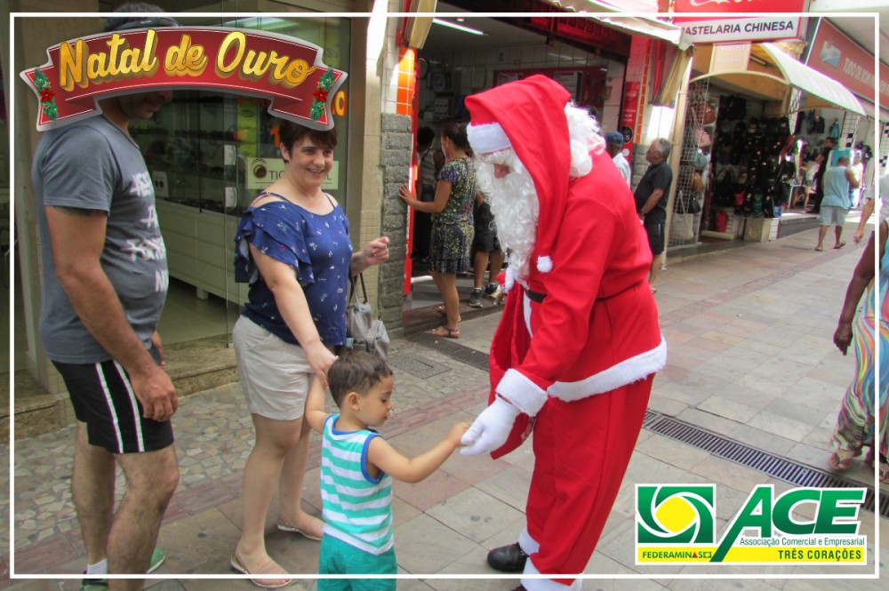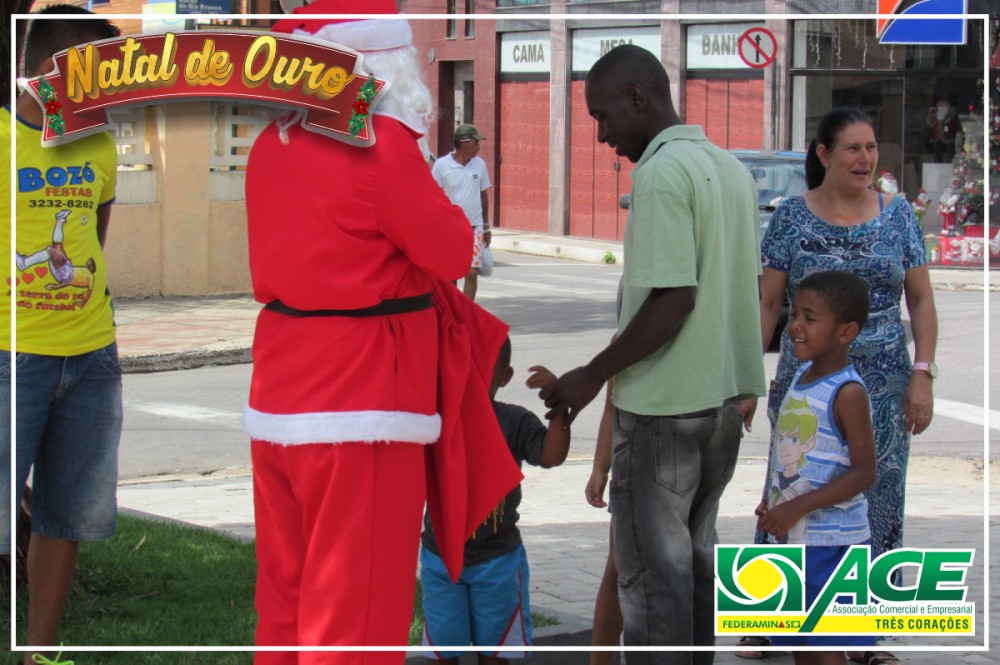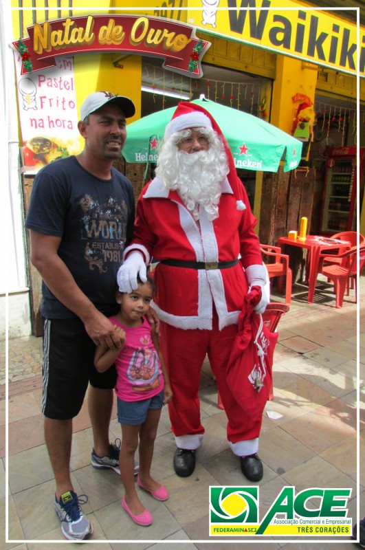 Papai Noel da Associação Comercial passeando pela cidade e pela feira de artesanatos. Distribuiu balas, visitou o comércio e abraçou crianças.