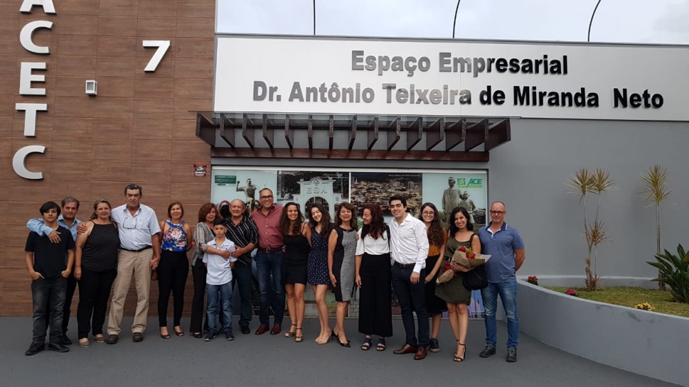 personalidade empresarial de Três Corações, na ocasião a fachada do prédio da entidade, recebeu honrosamente o nome Espaço Empresarial Dr. Antônio Teixeira de Miranda Neto. Estiveram presentes no evento familiares e amigos, autoridades, representantes de entidades locais e empresários. Confira abaixo fotos da solenidade.